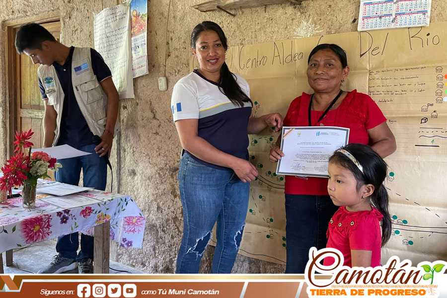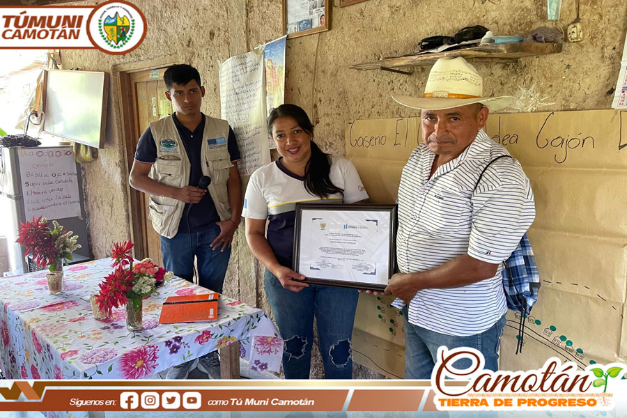 La Municipalidad de Camotán a través de la Unidad de Gestión Ambiental Municipal, Dirección Municipal de Agua y Saneamiento en coordinación con Asorech, Elvetas, Unión Europea y Unicicef Certificaron a la comunidad de Cajón del Rio por medio de la metodología de Saneamiento he higiene total sostenible- SAHTOSO- que consiste en hacer conciencia de la contaminación ambiental en las comunidades en las que participaron aproximadamente 100 familias del sector.