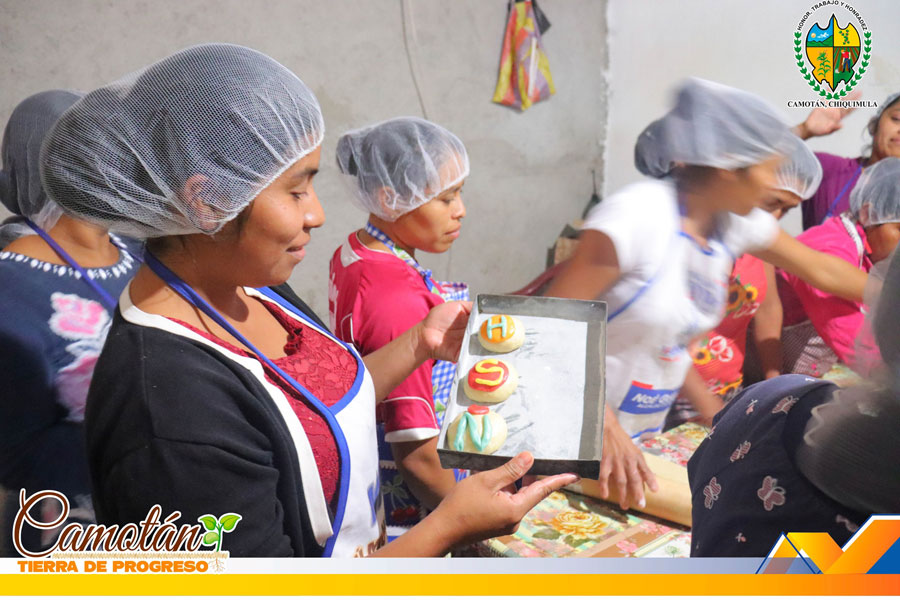 En en Coordinación con Dirección Municipal de la Mujer ( DMM ) y SOSEP con donaciones por parte de PMH/ Proyecto Sol y PNUD se impartieron cursos donde aprendieron a elaborar diferentes tipos de pan y postres para Fortalecer conocimientos, mejorar la calidad de vida y lograr el empoderamiento de Mujeres para Emprender Negocios y Desarrollar la Economía Local.