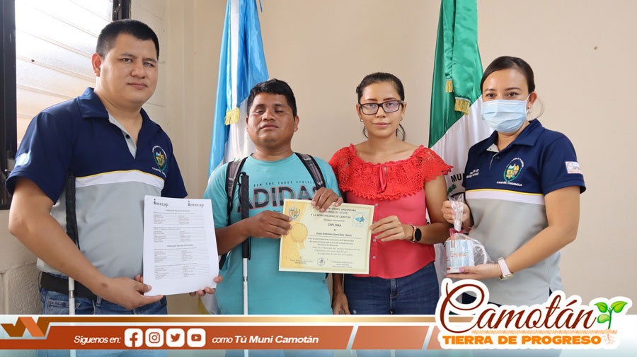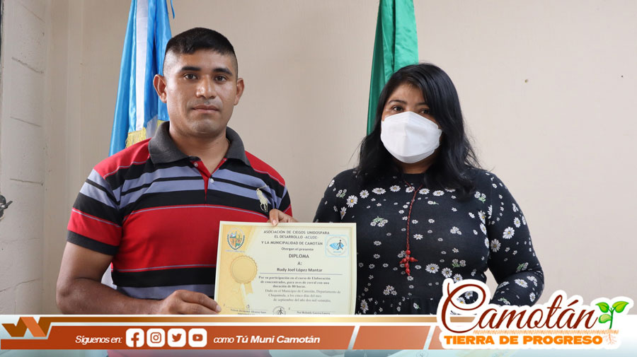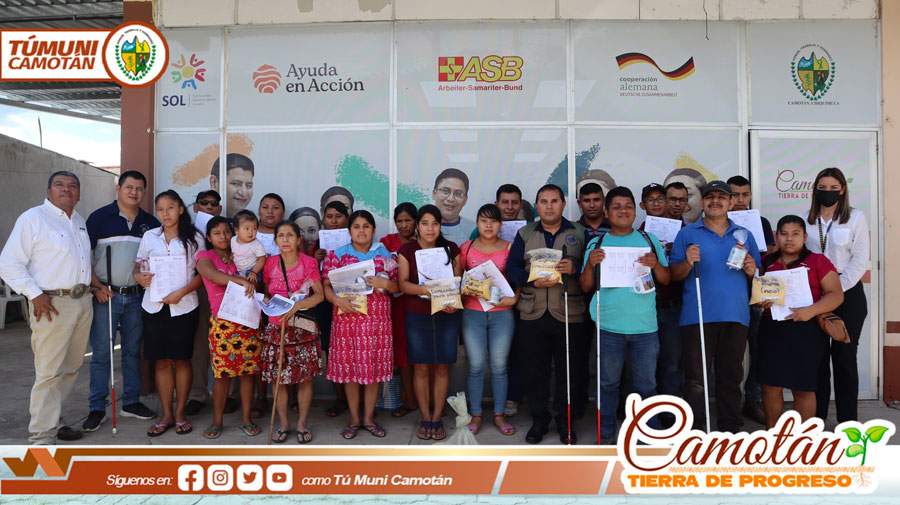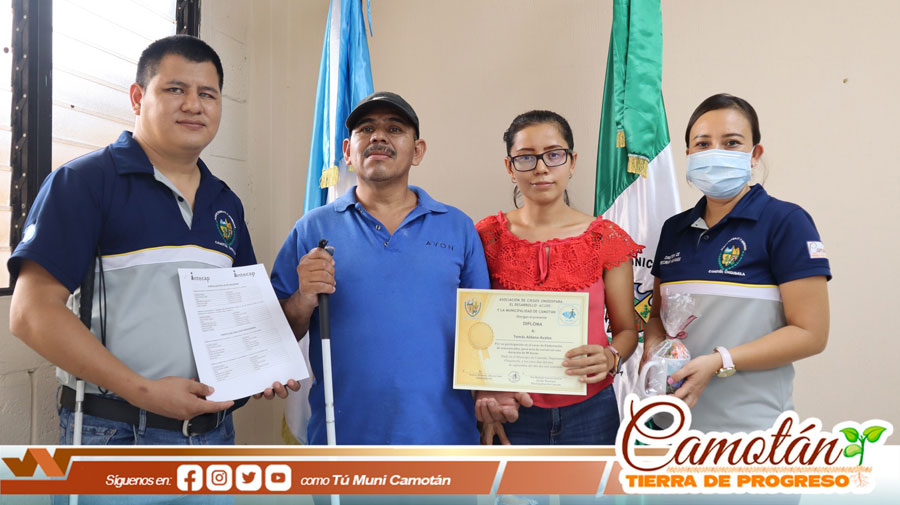 La Municipalidad de Camotán a través de la Oficina de Discapacidad en coordinación con la Asociación de Ciegos Unidos por el Desarrollo, ACUDE, y la Asociación de Alternativas Juveniles ADEJU, llevaron a cabo la clausura de 18 personas con discapacidad y familiares de personas con discapacidad que participaron en talleres de elaboración de alimento para animales de granja.
