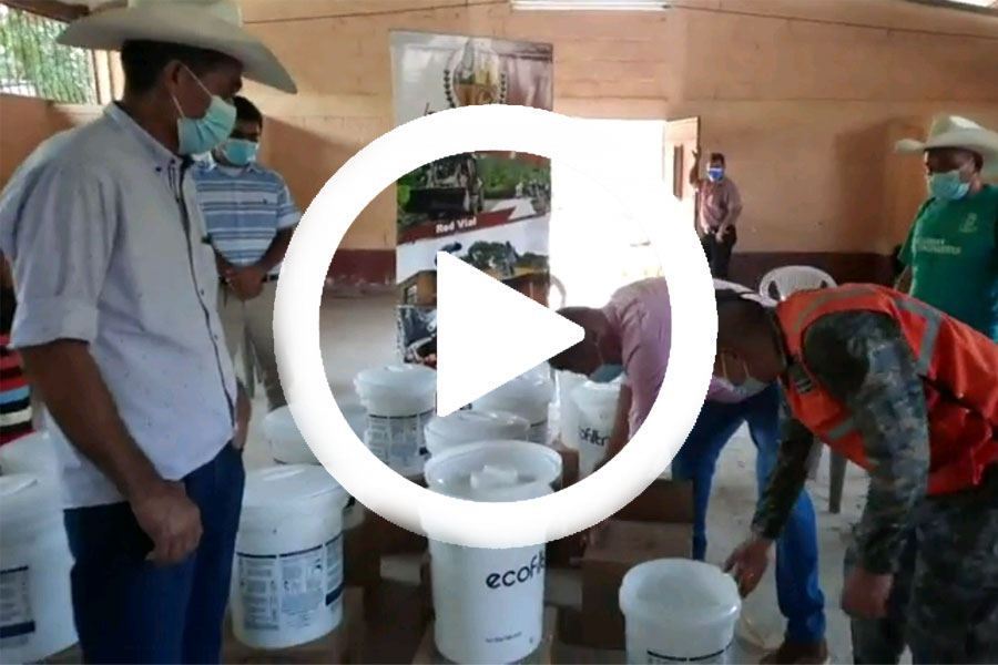 Entrega de ecofiltros a familias participantes tomando en cuenta iglesias de la comunidad de Caparjá, centros educativos y familias del caserío Carrizalito, Camotán.