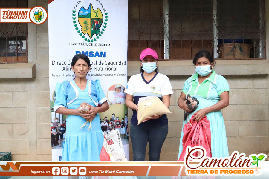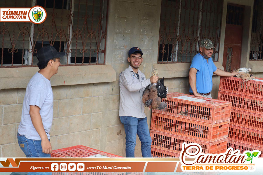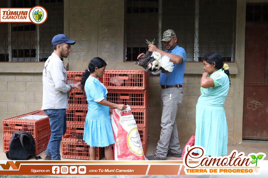 Un lote de 12 gallinas criollas fue entregado a cada familia. De esta manera la municipalidad de Camotán hace su mayor esfuerzo para contribuir a la reducción de los problemas de desnutrición aguda y crónica que afectan a la población rural.