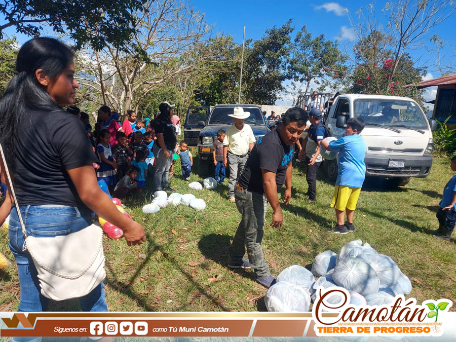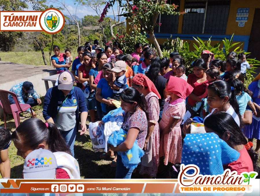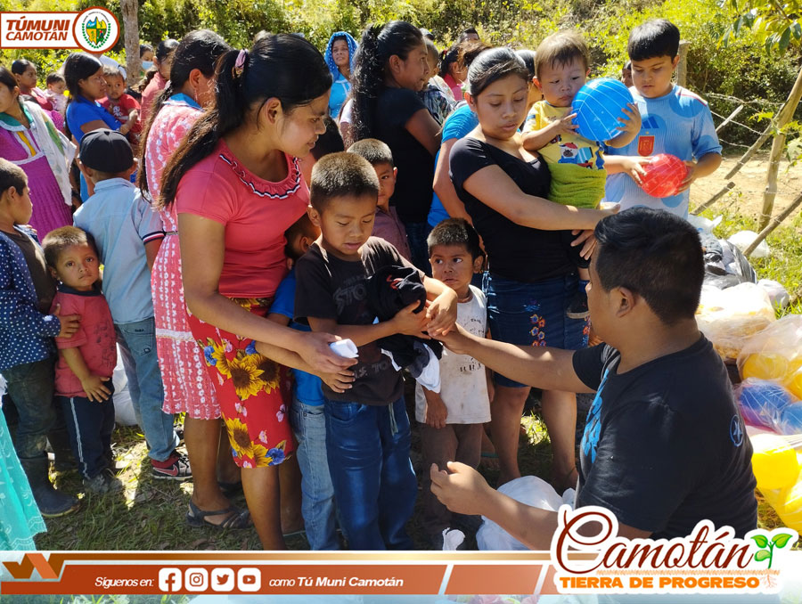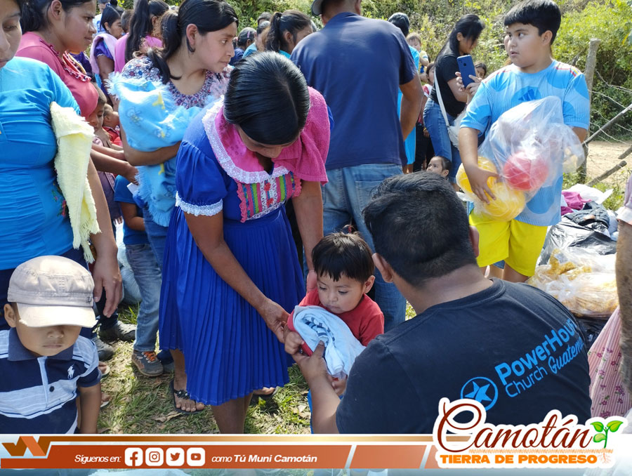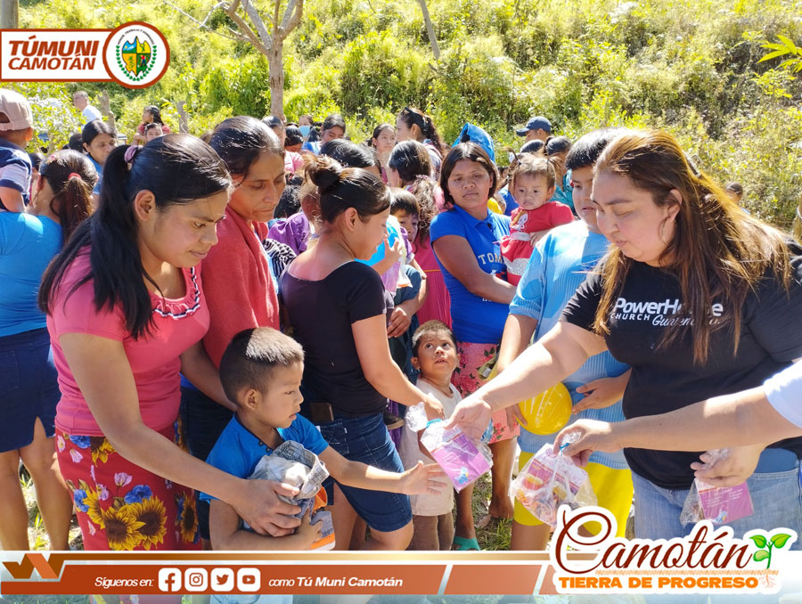 La Dirección Municipal de la Mujer de la Municipalidad de Camotán en coordinación con el Ministerio Misericordia en Acción y Power House realizaron la entrega de víveres, ropa, calzado y juguetes a 300 beneficiados del caserío Filincas y Guayabo Centro, aldea Guayabo.