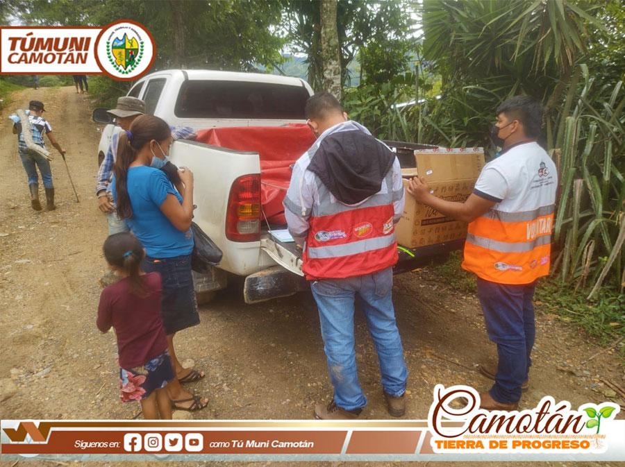 Se llevó a cabo la cuarta fase de la entrega denominada Plan de Asistencia Covid-19 gracias a Fundación Castillo Córdoba en coordinación con la Dirección Municipal de Seguridad Alimentaria y Nutricional –DMSAN-, sector salud y SESAN a través del programa Guatemaltecos al Rescate, realizando la entrega de víveres a niños con desnutrición aguda en las diferentes comunidades y casco urbano del municipio Camotán.